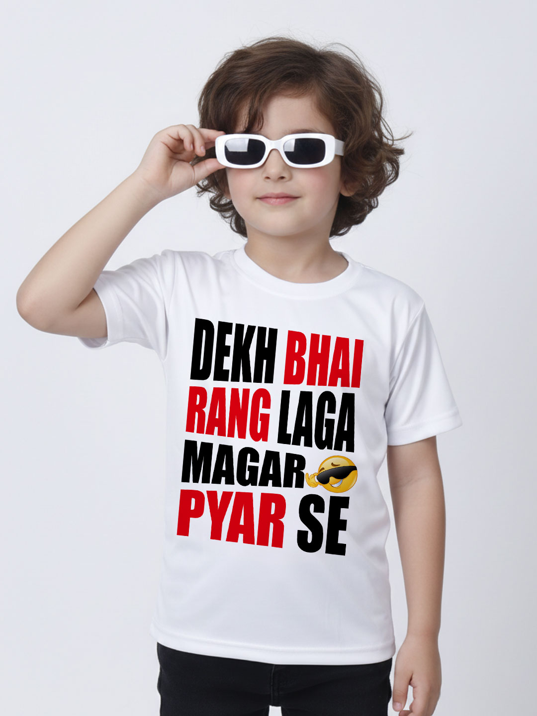 Dekh Bhai Rang Laga Magar Pyar Se T-Shirt: The Ultimate Kid?s White Holi Tee