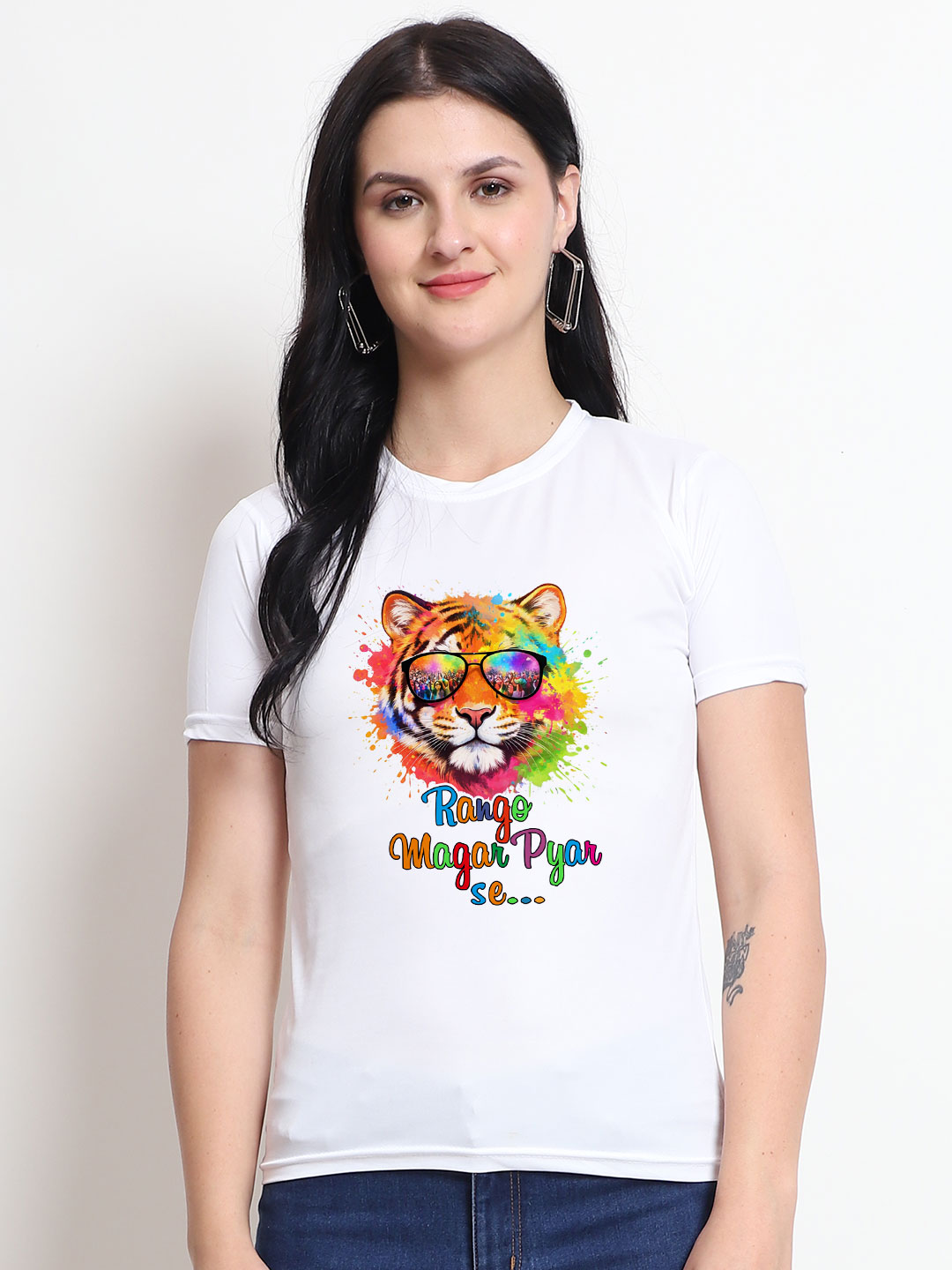 Rango Magar Pyar Se T-Shirt: The Ultimate Women?s White Holi Tee