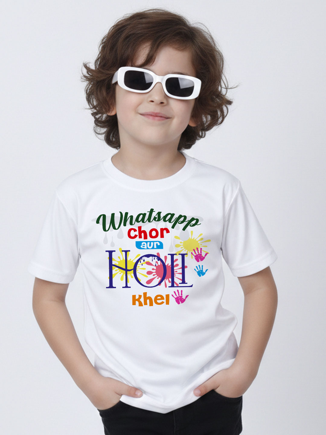 Get ready to immerse yourself in the festival of colors with our high-performance Whatsapp Chor aur Holi Khel T-Shirt. As you prepare for the vibrant celebrations, finding the right outfit that balances style, tradition, and comfort is essential. Our Kid’s White Holi tee is designed to be the perfect canvas for every splash of gulal and every drop of colored water.